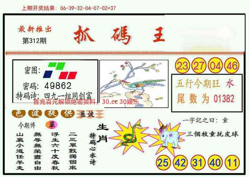 | 311期:合数单双【合双】开:蛇37准 | |||